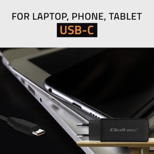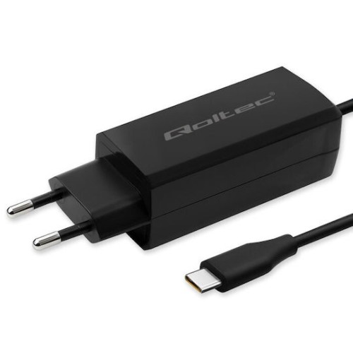 Qoltec Φορτιστής με Ενσωματωμένο Καλώδιο GaN USB-C 65W Power Delivery / Quick Charge 4.0 Μαύρος (52419) (52419)