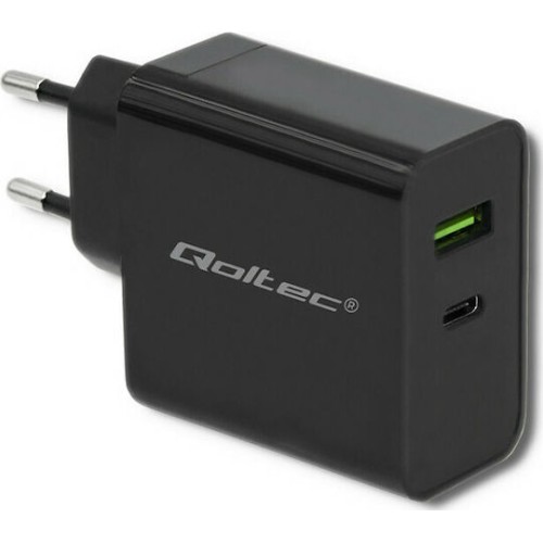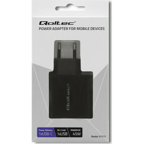 Qoltec Φορτιστής Χωρίς Καλώδιο με Θύρα USB-A και Θύρα USB-C 42W Power Delivery Μαύρος (51717) (51717)