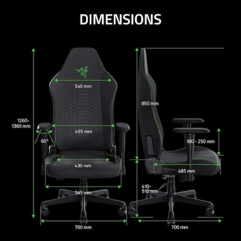 Razer ISKUR V2 X Υφασμάτινη Καρέκλα Gaming με Ρυθμιζόμενα Μπράτσα Μαύρη (RZ38-05310100-R3G1)
