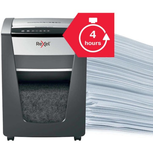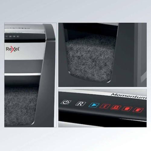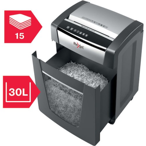 Ο Rexel Momentum M515 καταστρέφει έως 15 φύλλα Α4 (80 gsm) σε P‑5 micro‑cut (2×15 mm) κομμάτια, λειτουργεί συνεχώς έως και 4 ώρες με anti‑jam τεχνολογία, έχει χωρητικότητα κάδου 30 λίτρων και αθόρυβη αφής διαχείριση—ιδανικός για μικρά γραφεία με υψηλές απαιτήσεις ασφαλείας