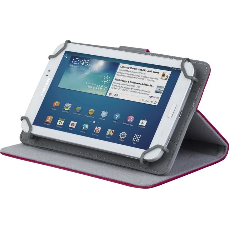 Θήκη της εταιρείας Rivacase που κλείνει σαν βιβλίο και προσφέρει προστασία στο tablet σου από πτώσεις, γρατζουνιές κι άλλες φθορές. Είναι κατασκευασμένη από δερματίνη, υλικό που μοιάζει με το δέρμα αλλά δεν έχει την ίδια αντοχή με αυτό. Είναι πιο ανθεκτικό στο φως του ήλιου και vegan καθώς δεν χρειάζεται το δέρμα ζώου για να κατασκευαστεί. Μπορεί να χρησιμοποιηθεί ως stand επιτρέποντας την παρακολούθηση βίντεο/ταινιών, την προβολή συνταγών μαγειρικής, μουσικών βιβλίων και παρτιτούρων μουσικής και την πραγματοποίηση βιντεοκλήσεων χωρίς να το κρατάς στα χέρια.