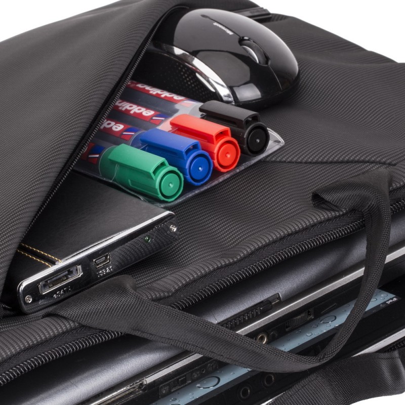 Η τσάντα ώμου της Rivacase είναι υφασμάτινη και χωράει laptop έως και 15.6 ιντσών.