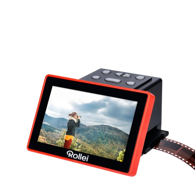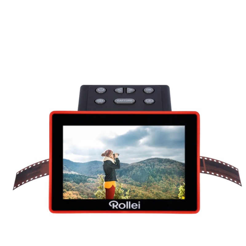 Scanner της εταιρείας Rollei, τύπου film. Αν διαθέτετε φιλμ και θέλετε να τα ψηφιοποιήσετε, δηλαδή να το σκανάρετε και να το μετατρέψετε σε ψηφιακά αρχεία, το film scanner είναι αυτό που χρειάζεστε. Η τροφοδότηση του γίνεται με φύλλα Photo.