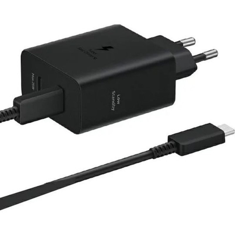 Samsung Φορτιστής με 2 Θύρες USB-C και Καλώδιο USB-C - USB-C 50W Power Delivery Μαύρος (EP-T5020X) (EP- T5020XBEGEU)