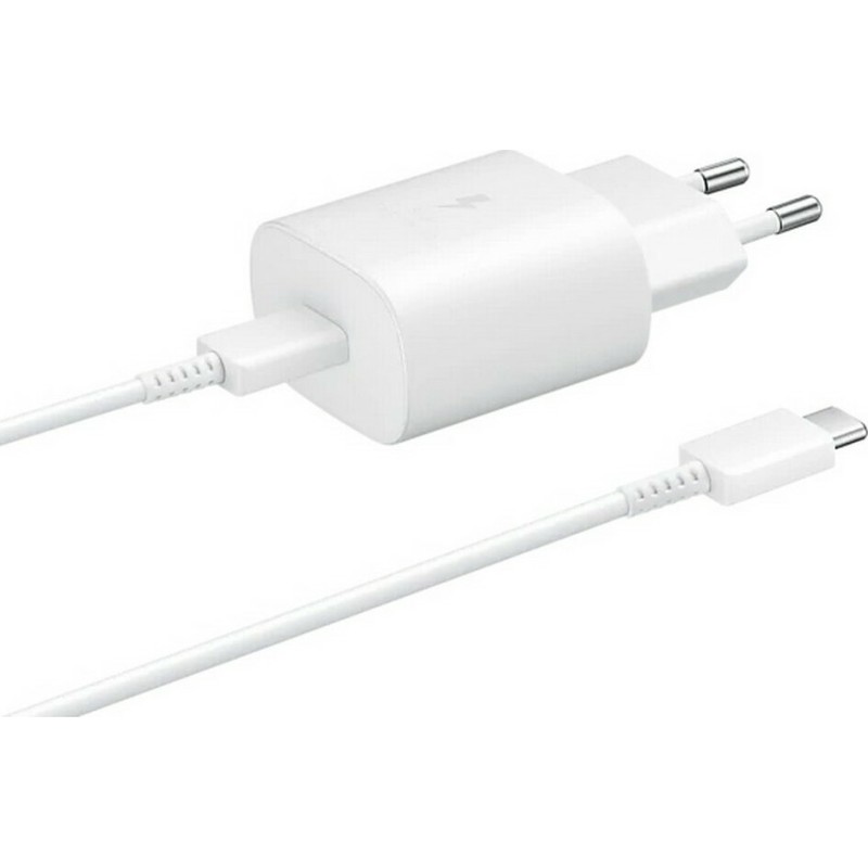 Samsung Φορτιστής με Θύρα USB-C και Καλώδιο USB-C 25W Λευκός (EP-TA800X Bulk) (EP-TA800XWEGWW)