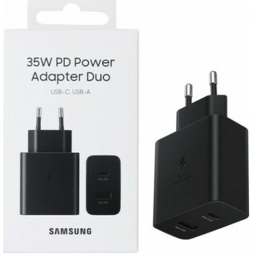 Samsung Φορτιστής Χωρίς Καλώδιο με Θύρα USB-A και Θύρα USB-C 35W Μαύρος (EP-TA220NBEGEU) (EP-TA220NBEGEU)