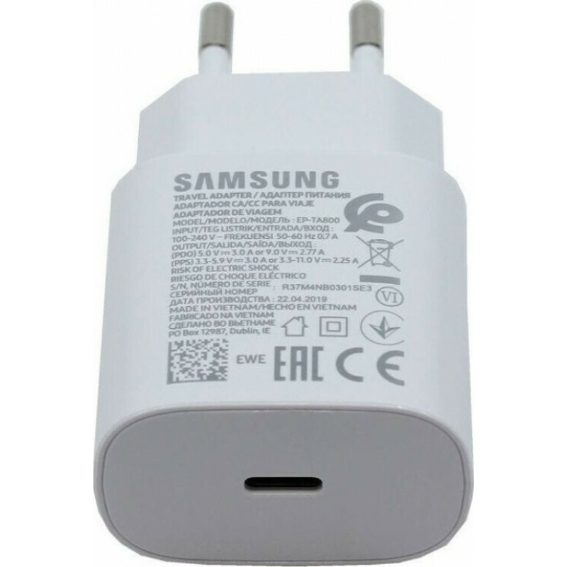 Samsung Φορτιστής Χωρίς Καλώδιο με Θύρα USB-C 25W Power Delivery Λευκός (EP-TA800N Bulk) (EP-TA800NWEGEU)