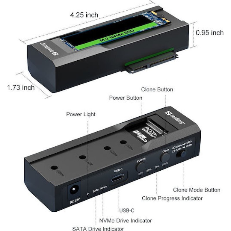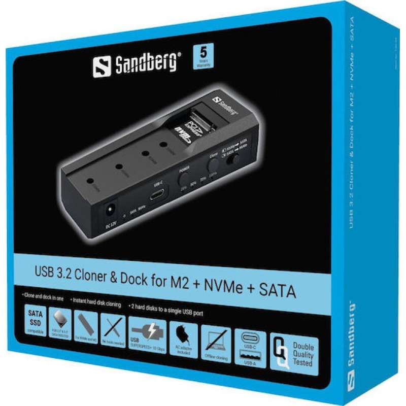 Sandberg Docking Station για 2 Σκληρούς Δίσκους SATA 2.5" / 3.5" / M.2(2230)" / M.2(2242)" / M.2(2260)" / M.2(2280)" με σύνδεση USB 3.2 (136-49) (136-49)