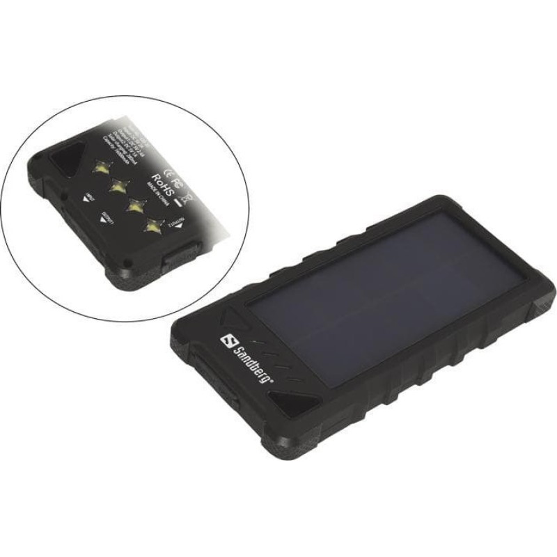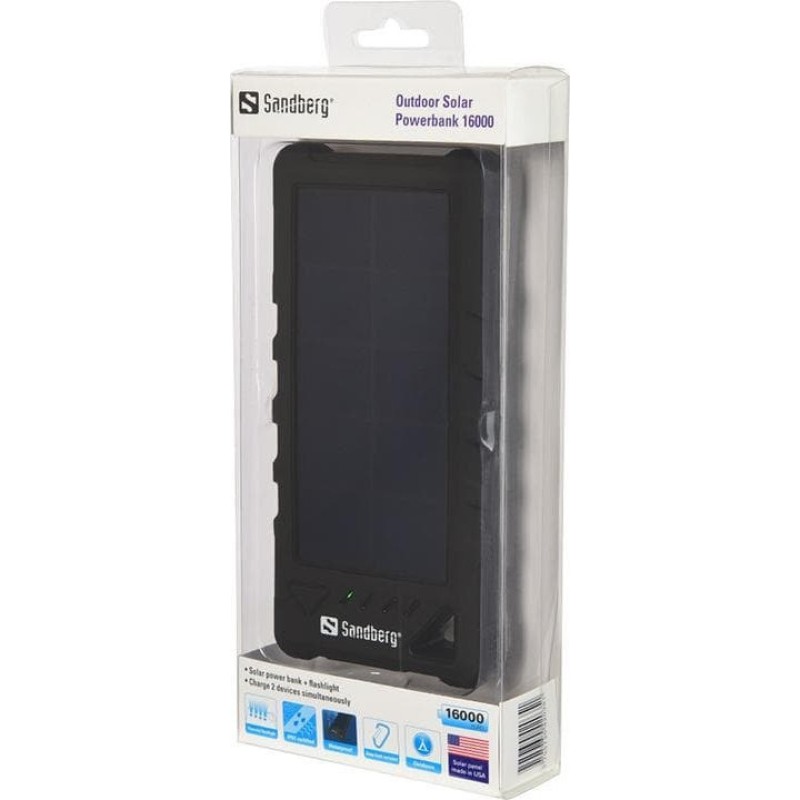 Sandberg Outdoor Ηλιακό Power Bank 16000mAh με Θύρα USB-A και Θύρα USB-C Μαύρο (420-35)