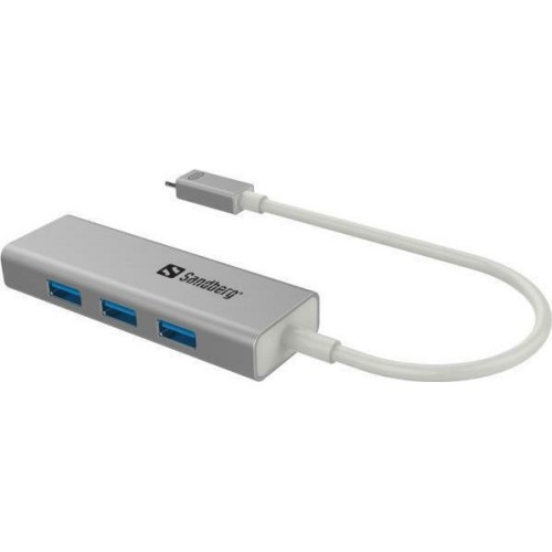 Sandberg USB 3.0 Hub 3 Θυρών με σύνδεση USB-C Ασημί (136-03)