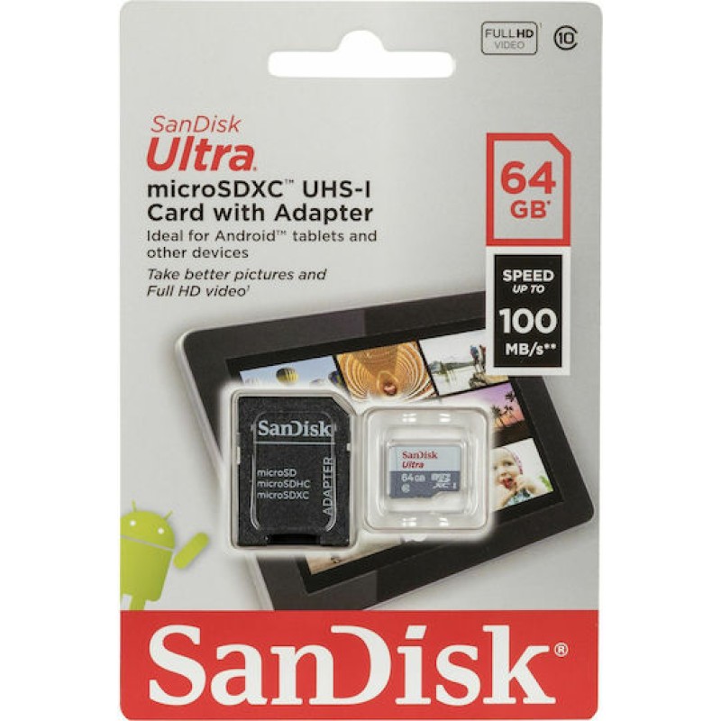Sandisk Ultra microSDXC 64GB Class 10 UHS-I με αντάπτορα
