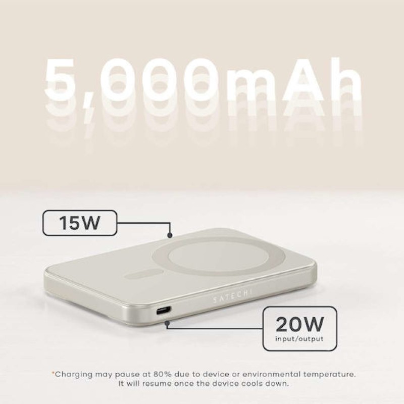 Satechi OntheGo MagSafe Power Bank 5000mAh 15W με Θύρα USB-C Μπεζ