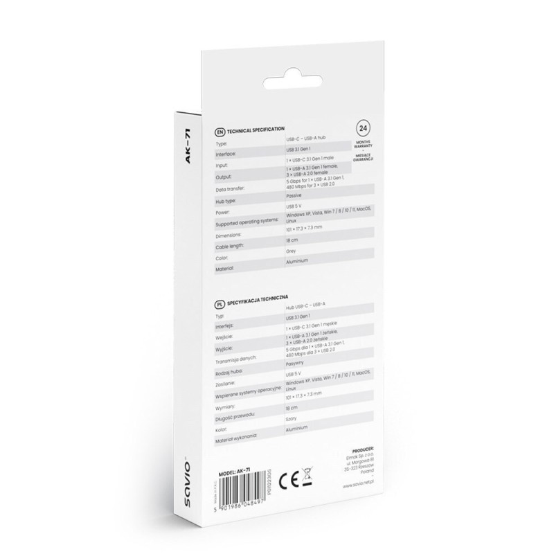 Savio AK-71 USB 3.1 GEN 1 Hub 4 Θυρών με σύνδεση USB-C (AK-71)