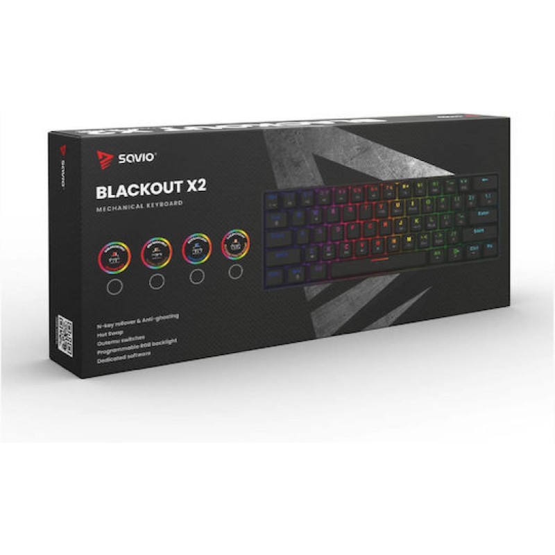 Savio Blackout X2 Gaming Μηχανικό Πληκτρολόγιο 60% με Outemu Red διακόπτες και RGB φωτισμό (Αγγλικό US)