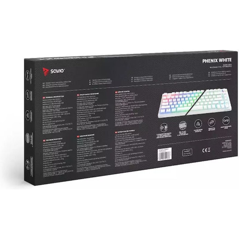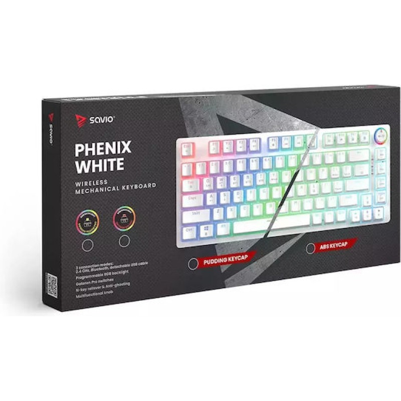 Savio Phenix ABS Ασύρματο Gaming Μηχανικό Πληκτρολόγιο 75% με Gateron Red Pro διακόπτες και RGB φωτισμό (Αγγλικό US) Λευκό (PHENIX WHITE GAT RED)