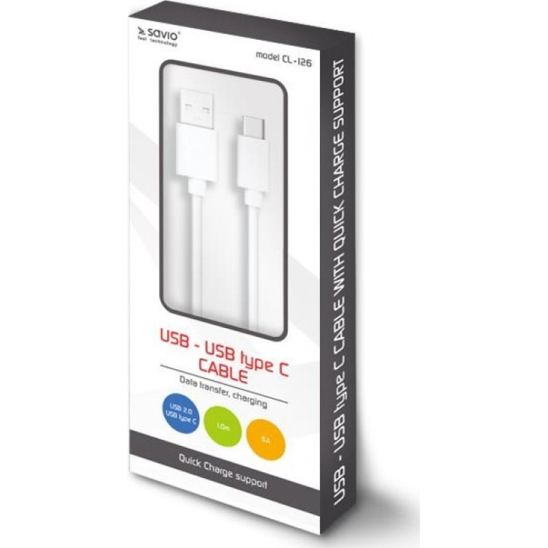 Savio Regular USB 2.0 Cable USB-C male - USB-A male Λευκό 1m (CL-126) (CL-126)