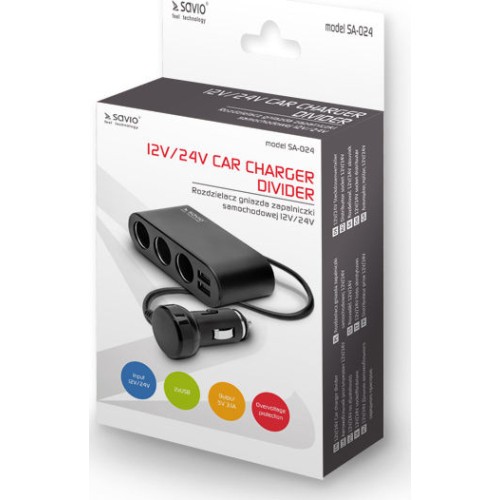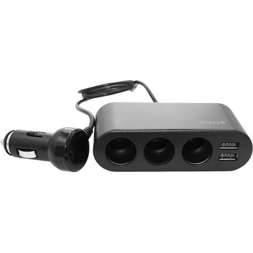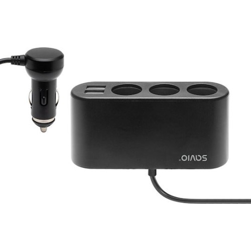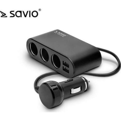 Savio SA-024 Φορτιστής Αυτοκινήτου με Θύρες: 2xUSB 3xΑναπτήρα μαζί με Καλώδιο Ενσωματωμένο Μαύρο Χρώμα (SA-024)