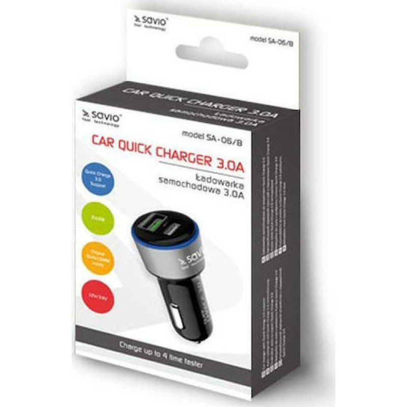 Savio SA-06 Φορτιστής Αυτοκινήτου 3A Γρήγορης Φόρτισης με Θύρες: 2xUSB Μπλε (SA-06/B)