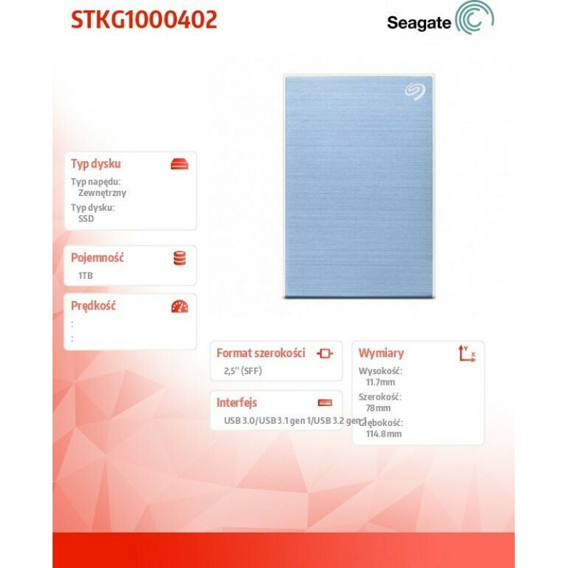 Seagate One Touch USB 3.2/USB-C Εξωτερικός SDD 1TB Μπλε (STKG1000402)