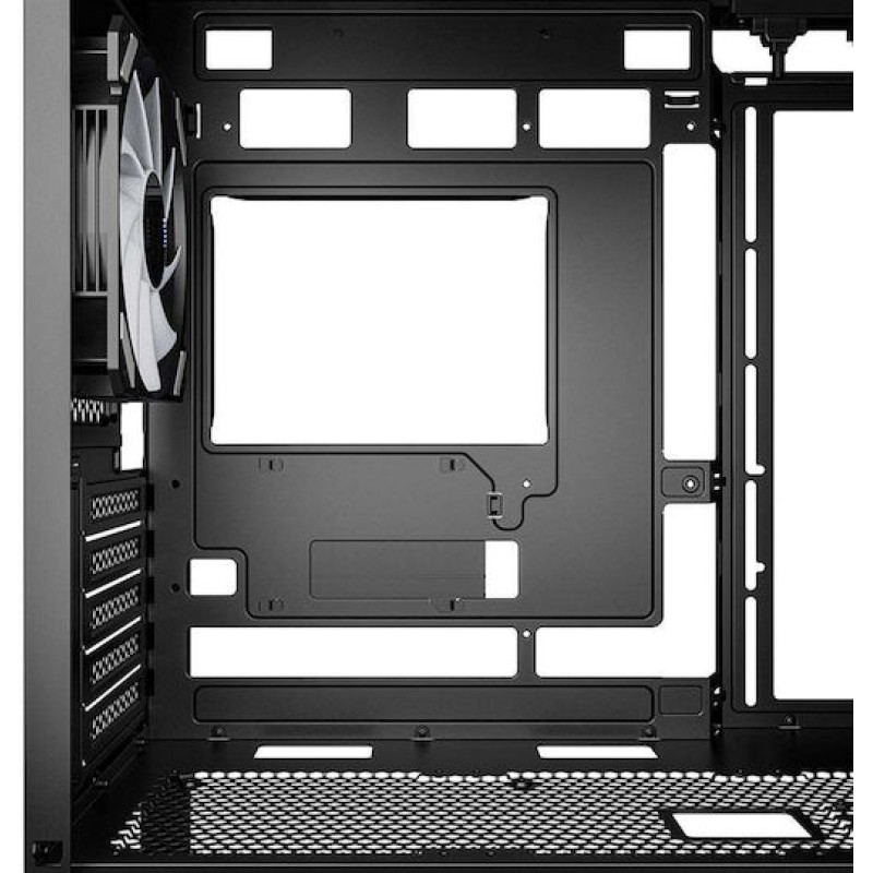 Διαθέτει πλαϊνό πάνελ από tempered glass, ενσωματωμένο σύστημα διαχείρισης καλωδίων και RGB φωτισμό με 22 εντυπωσιακά εφέ, πλήρως συμβατό με όλες τις μεγάλες πλατφόρμες συγχρονισμού RGB. Είναι μια δυναμική επιλογή για όσους επιθυμούν ένα μικρό αλλά ικανό κουτί με έμφαση στην εμφάνιση και την απόδοση.