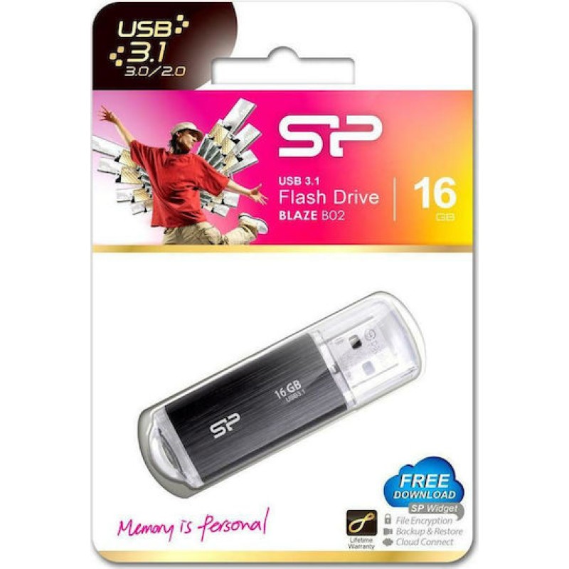 Silicon Power Blaze B02 16GB USB 3.2 Stick Μαύρο (SP016GBUF3B02V1K)