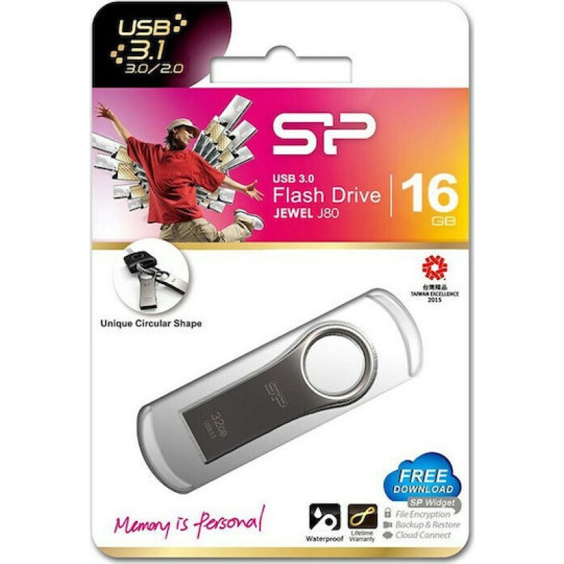 Silicon Power Jewel J80 16GB USB 3.2 Stick Ασημί (SP016GBUF3J80V1T)
