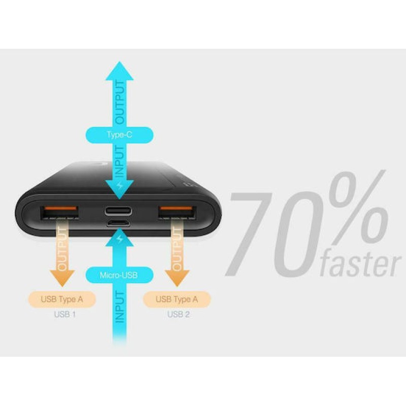 Silicon Power QP15 Power Bank 10000mAh 18W με 2 Θύρες USB-A και Θύρα USB-C Power Delivery / Quick Charge 3.0 Μαύρο (SP10KMAPBKQP150K)