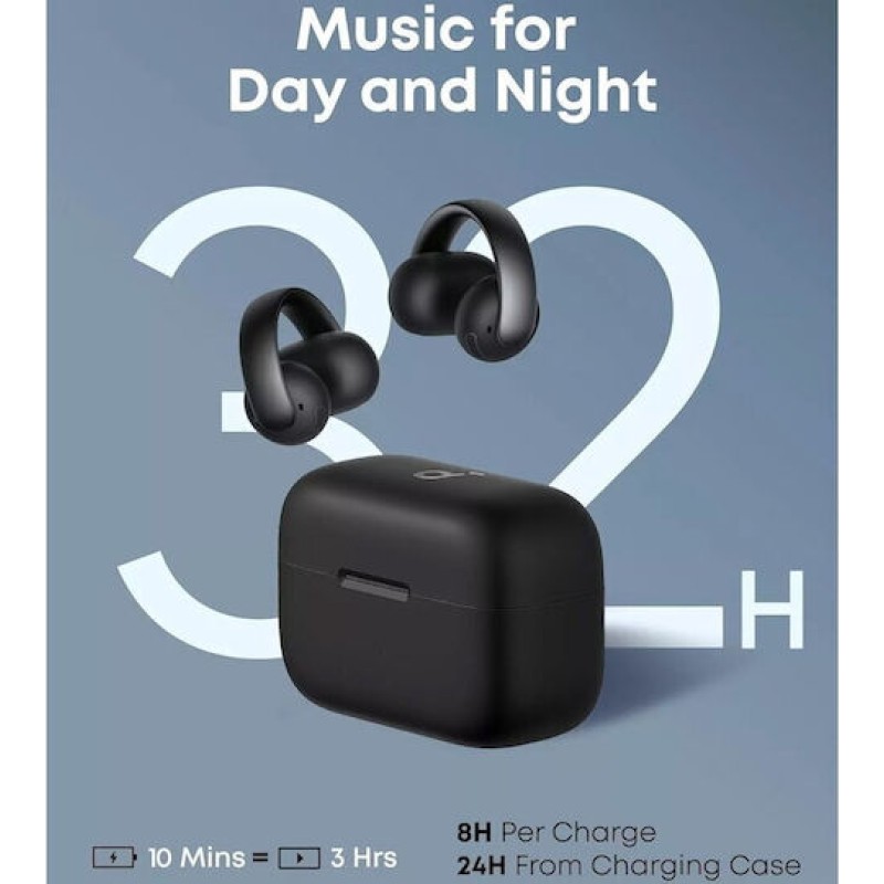 Τα προϊόντα που δεν αναγράφουν διαθέσιμο σημαίνει ότι δεν υπάρχουν άμεσα διαθέσιμα στο κατάστημα και θα παραληφθούν το αργότερο εντός των εργάσιμων ημερών που αναγράφεται στη διαθεσιμότητα. Σε κάθε περίπτωση η ημερομηνία μπορεί να μεταβληθεί και θα υπάρχει σχετική ενημέρωσή σας.Τα Soundcore AeroClip είναι open-ear clip-on ασύρματα ακουστικά που σχεδιάστηκαν για άνεση και σταθερότητα χωρίς να “μπαίνουν” μέσα στο αυτί. Χρησιμοποιούν εύκαμπτο σχεδιασμό με memory titanium και εργονομικό clip, ώστε να εφαρμόζουν ασφαλώς ακόμη και σε έντονη κίνηση ή άθληση. Προσφέρουν ποιοτικό, καθαρό ήχο με ενισχυμένα μπάσα για open-ear κατηγορία, ενώ υποστηρίζουν Hi-Res ασύρματη ακρόαση και Bluetooth 5.4 για σταθερή σύνδεση. Η σχεδίασή τους αφήνει το αυτί ανοιχτό, ώστε να ακούς το περιβάλλον σου — κάτι που τα κάνει ιδανικά για βόλτες, ποδήλατο ή χρήση στην πόλη. Η αυτονομία φτάνει περίπου τις 8 ώρες συνεχούς χρήσης και έως 32 ώρες με τη θήκη, με γρήγορη φόρτιση για επιπλέον ώρες ακρόασης σε λίγα λεπτά. Διαθέτουν επίσης πολλαπλά μικρόφωνα με AI για πιο καθαρές κλήσεις.
