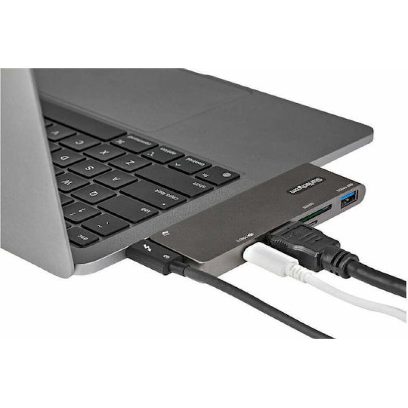 Το συγκεκριμένο USB-C multiport adapter με HDMI μετατρέπει MacBook Pro, MacBook Air (Intel και M1–M5), Google Pixelbook και άλλους φορητούς υπολογιστές ή tablets με USB-C σε πλήρη φορητό σταθμό εργασίας μέσω μίας μόνο σύνδεσης. Προσφέρει έξοδο εικόνας HDMI έως 4K στα 30Hz, μία θύρα USB-C για δεδομένα και φόρτιση, μία USB-A 5Gbps (με BC 1.2), καθώς και αναγνώστες καρτών SD και microSD για άμεση πρόσβαση σε αρχεία πολυμέσων. Υποστηρίζει φόρτιση έως 100W μέσω Power Delivery 3.0, διατηρώντας έως 92W για τον υπολογιστή, ενώ διαθέτει αναδιπλούμενο USB-C connector που συνδέεται απευθείας στη συσκευή χωρίς επιπλέον καλώδιο. Είναι ιδανικό για δημιουργία workstation με μία εξωτερική οθόνη 4K ή ultrawide, επιτρέποντας ταυτόχρονη σύνδεση περιφερειακών και φόρτιση, αρκεί η θύρα USB-C του laptop να υποστηρίζει Power Delivery.