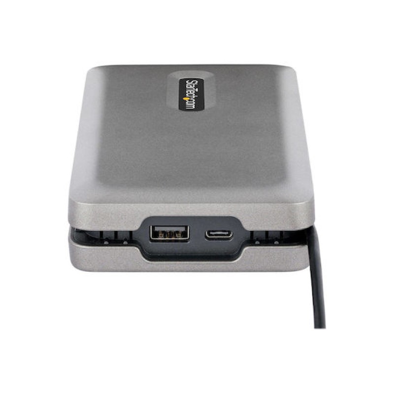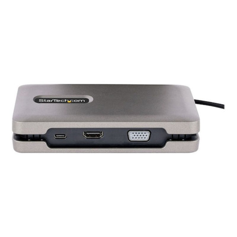 Το συγκεκριμένο USB-C Dual Monitor Multiport Adapter / Docking Station αποτελεί μια φορητή λύση επέκτασης που μετατρέπει laptop με USB-C ή Thunderbolt 3/4 σε πλήρες workstation με υποστήριξη διπλής οθόνης. Διαθέτει εξόδους HDMI 2.0b, VGA και USB-C (DP Alt Mode), επιτρέποντας σύνδεση έως δύο οθονών με ανάλυση έως 4K, ανάλογα με τον επεξεργαστή και την υποστήριξη MST του συστήματος (π.χ. έως 4K 60Hz σε DP 1.4 ή συνδυασμό 4K και 1440p). Περιλαμβάνει επίσης δύο θύρες USB-A 10Gbps, μία downstream USB-C 10Gbps με έως 10W ισχύ για περιφερειακά, Gigabit Ethernet για σταθερή ενσύρματη σύνδεση και USB Power Delivery 3.0 έως 100W (με 80W φόρτιση laptop και 20W δεσμευμένα για το dock). Υποστηρίζει bus power, Wake-on-LAN και Fast Role Swap για αποφυγή διακοπών ρεύματος, ενώ συνοδεύεται από ενσωματωμένο καλώδιο 25cm για ευελιξία. Είναι ιδανικό για γραφείο, home office ή φορητή χρήση, προσφέροντας υψηλή απόδοση βίντεο, αξιόπιστη δικτύωση και εκτεταμένες δυνατότητες διαχείρισης μέσω των εργαλείων StarTech Connectivity Tools.