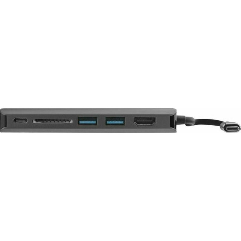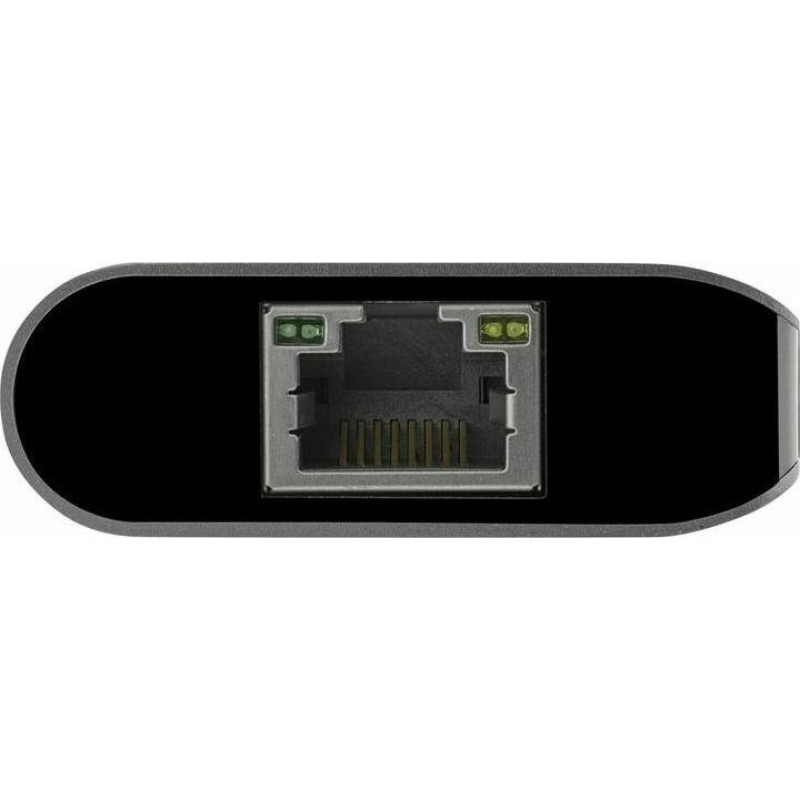 USB-C PD, 2 θύρες USB-A 3.0 και συνδέεται με οθόνη καθώς διαθέτει 1 θύρα