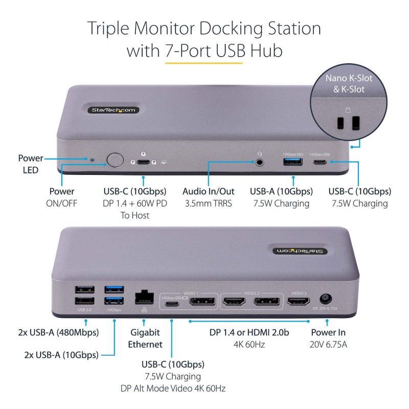 Station της εταιρίας StarTech που συνδέεται σε Laptop με θύρα USB-C.
