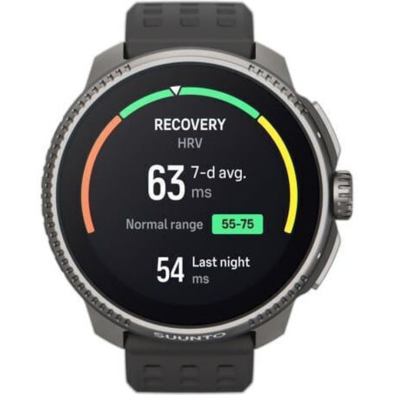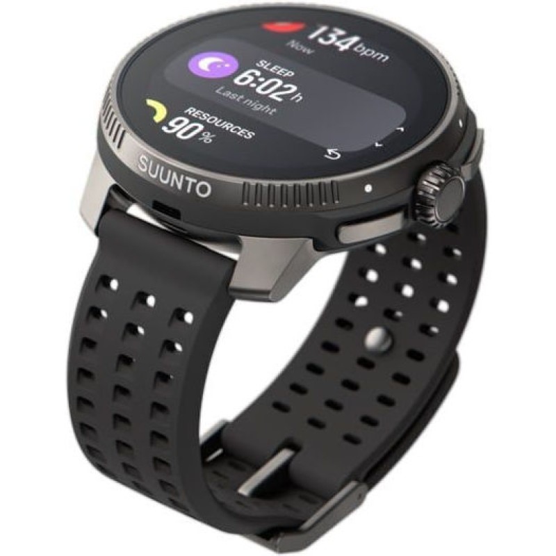 Suunto Race Titanium Charcoal SS050932000 είναι ένα υψηλής απόδοσης πολυ-λειτουργικό smartwatch/αθλητικό ρολόι με AMOLED οθόνη 1.43″, τιτάνιο πλαίσιο και κρύσταλλο ζαφειριού, σχεδιασμένο για προπόνηση, αγώνες και υπαίθριες δραστηριότητες. Προσφέρει GPS με υποστήριξη πολλαπλών δορυφορικών συστημάτων, πλοήγηση με offline χάρτες και πάνω από 95 αθλητικά προφίλ, καθώς και παρακολούθηση καρδιακής συχνότητας/HRV και ανάλυση προπόνησης. Η μπαταρία διαρκεί έως ~26 ημέρες σε smartwatch mode και δεκάδες ώρες με ενεργό GPS, ενώ είναι αδιάβροχο έως 100 m και συνδέεται με την Suunto App για λεπτομερή δεδομένα και ειδοποιήσεις κινητού.