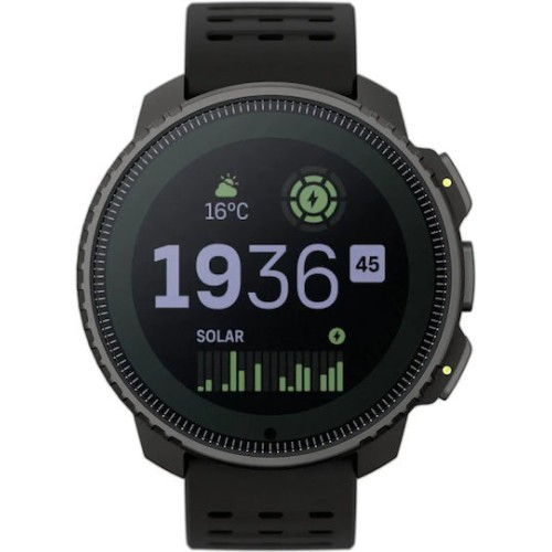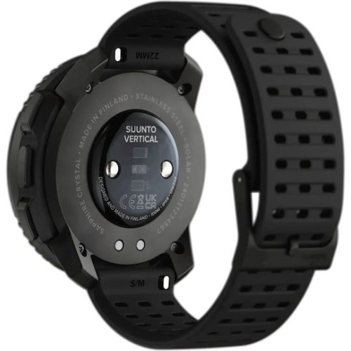 Το Suunto Vertical Solar All Black (SS050978000) είναι ένα πολυλειτουργικό adventure multisport GPS smartwatch ιδανικό για υπαίθριες δραστηριότητες και ταξίδια. Διαθέτει οθόνη 1,4″, ανθεκτικό σώμα με ζαφειρένιο κρύσταλλο, offline χάρτες και πλοήγηση με Dual‑band GPS, καθώς και ενσωματωμένο βαρόμετρο, πυξίδα και πρόγνωση καιρού για ασφαλή πλοήγηση εκτός δρόμου. Προσφέρει εξαιρετική αυτονομία μπαταρίας έως και 60 ημέρες σε λειτουργία ρολογιού ή περισσότερες με ηλιακή φόρτιση, και πολλαπλά αθλητικά προφίλ για τρέξιμο, ποδηλασία, κολύμβηση κ.ά. Είναι ανθεκτικό στο νερό έως 100 m και συμβατό με Suunto App & άλλες εφαρμογές για λεπτομερή ανάλυση και κοινή χρήση δεδομένων.