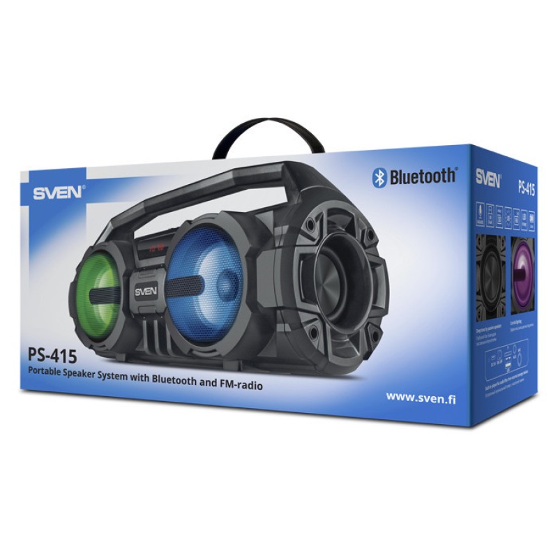 Τα προϊόντα που δεν αναγράφουν διαθέσιμο σημαίνει ότι δεν υπάρχουν άμεσα διαθέσιμα στο κατάστημα και θα παραληφθούν το αργότερο εντός των εργάσιμων ημερών που αναγράφεται στη διαθεσιμότητα. Σε κάθε περίπτωση η ημερομηνία μπορεί να μεταβληθεί και θα υπάρχει σχετική ενημέρωσή σας.Το φορητό ηχείο bluetooth Sven PS-415 είναι μια συσκευή που σε ένα συμπαγές περίβλημα κρύβει σχεδόν όλες τις λειτουργίες που βρίσκονται σε άλλα ηχεία Sven. Ενσωματωμένη επαναφορτιζόμενη μπαταρία, υψηλή ισχύς, λειτουργία καραόκε, LED οθόνη, λειτουργία ραδιοφώνου FM είναι μερικά μόνο από τα πλεονεκτήματα του ηχείου.