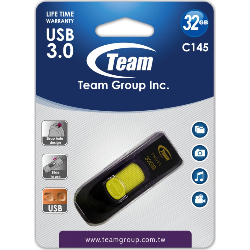 TeamGroup C145 32GB USB 3.2 Stick Μαύρο (TC145332GY01)
