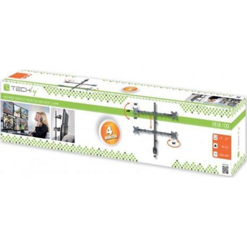 Techly Βάση Γραφείου για 4 Οθόνες έως 27" με Βραχίονα (ICA-LCD-382-Q) (027521)