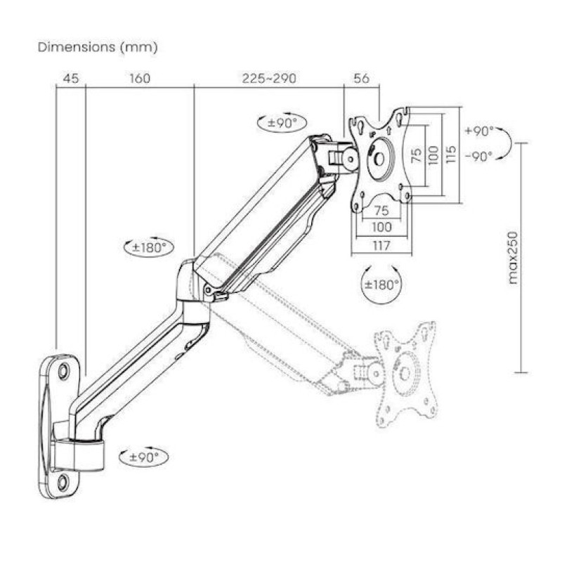 Ο ICA-LCD G112E είναι βραχίονας τοίχου με ελατήριο για οθόνες 17–32", με μηχανισμό αντιστάθμισης βάρους για εύκολη ρύθμιση. Υποστηρίζει έως 9 kg και είναι συμβατός με VESA 75x75 και 100x100. Προσφέρει πλήρη ευελιξία κινήσεων (±90° οριζόντια, ±180° περιστροφή, 360° VESA), ενώ επιτρέπει κατακόρυφη ή οριζόντια τοποθέτηση οθόνης. Η προέκταση φτάνει τα 55,1 cm και διαθέτει διαχείριση καλωδίων και αφαιρούμενη πλάκα VESA για εύκολη εγκατάσταση.