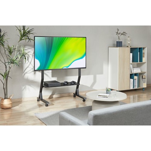 Η Techly ICA-TR325 είναι μια στιβαρή, τροχήλατη βάση δαπέδου σχεδιασμένη για μεγάλες τηλεοράσεις 45" έως 90", ιδανική για επαγγελματική χρήση, τηλεδιασκέψεις, gaming και παρουσιάσεις. Διαθέτει κλειδούμενους τροχούς για εύκολη μετακίνηση και σταθερότητα, διπλή ρύθμιση ύψους για σωστή τοποθέτηση της οθόνης στο ύψος των ματιών και μεγάλο ράφι πολυμέσων για συσκευές όπως αποκωδικοποιητές και κονσόλες. Η μεταλλική κατασκευή με ατσάλινη κολόνα, υποστήριξη curved TVs, συμβατότητα με πληθώρα προτύπων VESA έως 800×400 και μέγιστο φορτίο 60 kg εξασφαλίζουν αντοχή, ασφάλεια και ευελιξία σε κάθε χώρο.