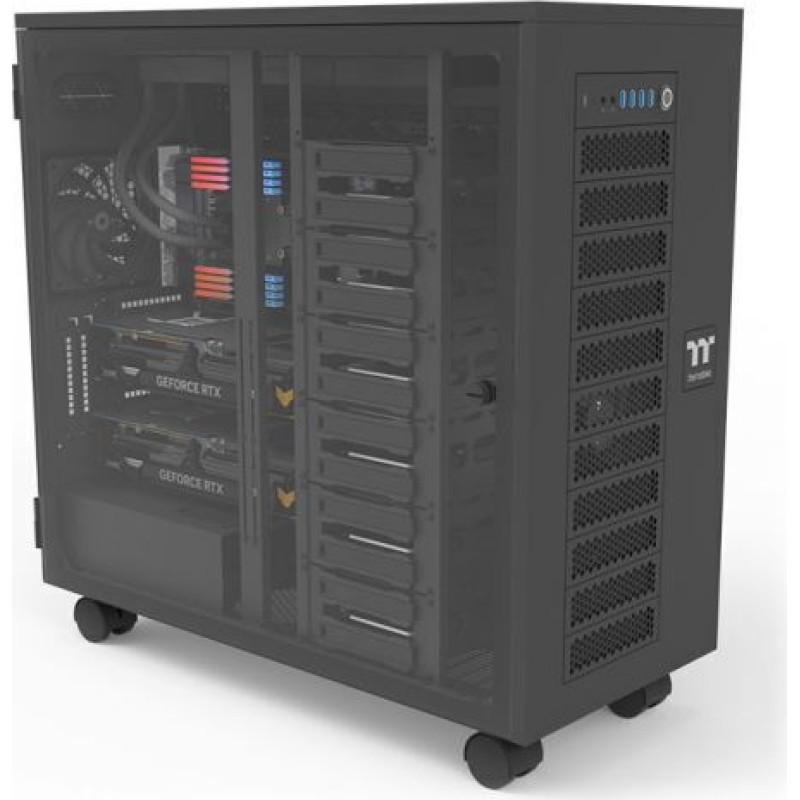 Δυνατότητα στοίβαξης με το pedestal AX100 της Thermaltake για σύστημα διπλού workstation ή ακόμα μεγαλύτερη επέκταση.