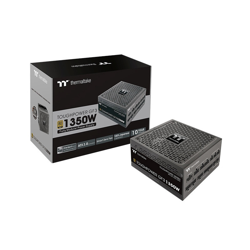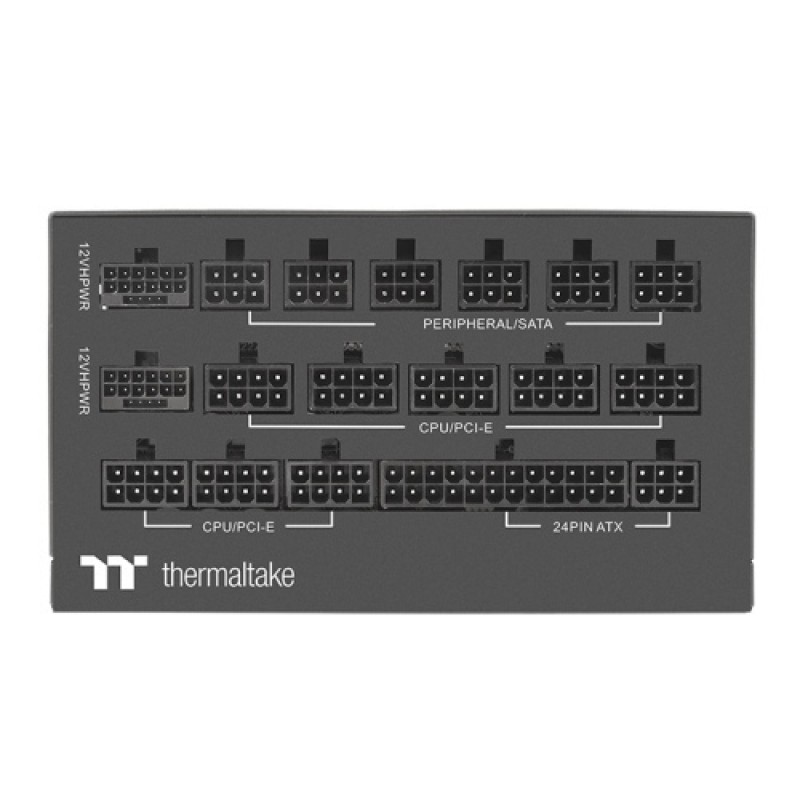 Τροφοδοτικό υπολογιστή της Thermaltake με ισχύ 1350W. Είναι πιστοποιημένο με 80 Plus Gold, κάτι που αφορά την απόδοση του σε σχέση με την ονομαστική του ισχύ σε Watt. Η συγκεκριμένη πιστοποίηση αφορά τροφοδοτικά για υπολογιστές υψηλών επιδόσεων με μεγάλη κατανάλωση ή εταιρίες με πολλούς υπολογιστές όπου το όφελος λειτουργεί αθροιστικά. Είναι full modular, δηλαδή διαθέτει πλήρως αποσπώμενα καλώδια, κάτι που σου επιτρέπει να χρησιμοποιήσεις μόνο αυτά που χρειάζεσαι, προσφέροντας μια πιο τακτοποιημένη σύνθεση με καλύτερο αισθητικό αποτέλεσμα και ροή αέρα. Συμβατό με κουτί υπολογιστή ATX.