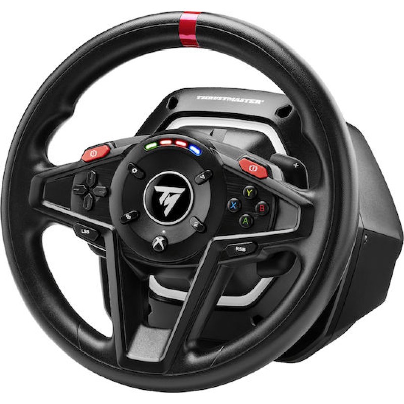Το Thrustmaster T128 είναι ένα entry‑level τιμόνι simracing με HYBRID DRIVE Force Feedback, που σας επιτρέπει να "νιώθετε" την αίσθηση του δρόμου, των κραδασμών και της πρόσφυσης. Διαθέτει LED ένδειξη στροφών κινητήρα, μαγνητικά paddle shifters και σετ πεντάλ με πρωτοποριακή τεχνολογία H.E.A.R.T, για εξαιρετικά ακριβείς και ανθεκτικές εντολές, ενώ η περιστροφή φτάνει έως 900°, προσφέροντας ρεαλιστική οδήγηση σε διάφορα είδη οχημάτων