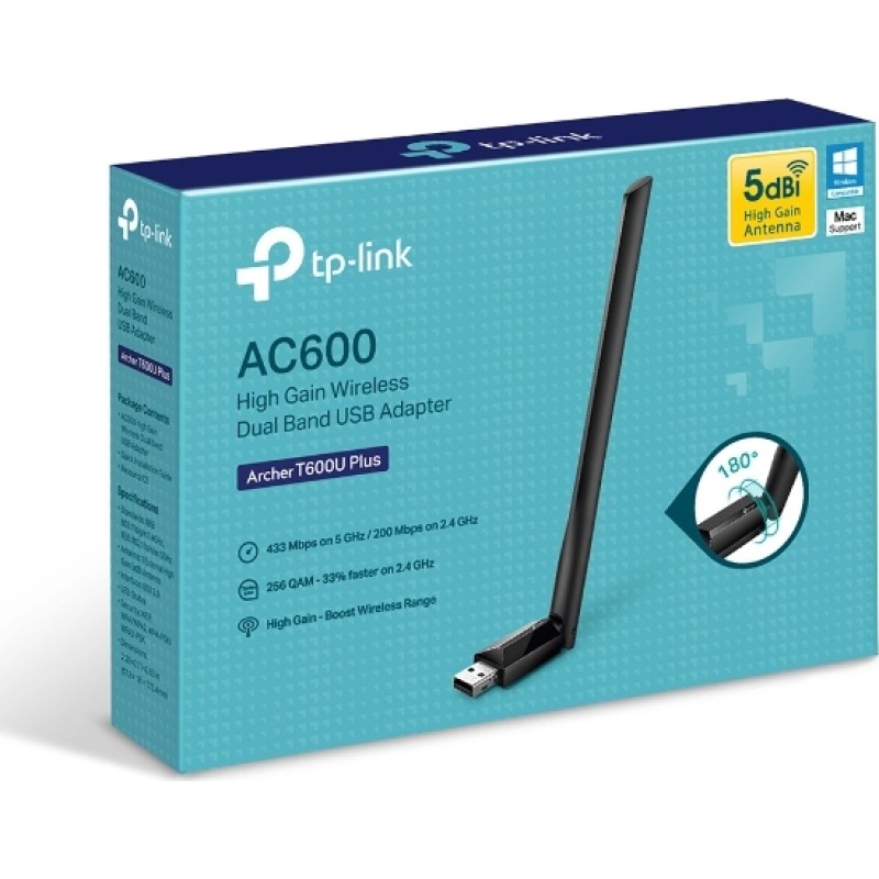 Τα προϊόντα που δεν αναγράφουν διαθέσιμο σημαίνει ότι δεν υπάρχουν άμεσα διαθέσιμα στο κατάστημα και θα παραληφθούν το αργότερο εντός των εργάσιμων ημερών που αναγράφεται στη διαθεσιμότητα. Σε κάθε περίπτωση η ημερομηνία μπορεί να μεταβληθεί και θα υπάρχει σχετική ενημέρωσή σας.Ασύρματο USB stick που με ασύρματες ταχύτητες 600Mbps (200Mpbs στα 2,4 GHz και 433 Mbps στα 5GHz), με υποστήριξη στο πρότυπο Wi-Fi 802.11ac επόμενης γενιάς, με βελτιωμένη εμβέλεια και ποιότητα σήματος το Archer T600U Plus σου εγγυάται γρήγορη, ασφαλή και σταθερή σύνδεση.