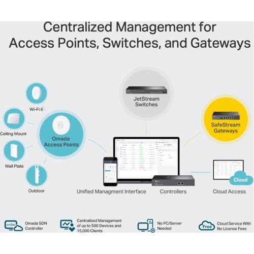 Επαγγελματική κεντρική διαχείριση για δίκτυο Wi-Fi έως 500 access points. Πρόσβαση στο cloud για διαχείριση από οπουδήποτε, οποτεδήποτε Κορυφαία