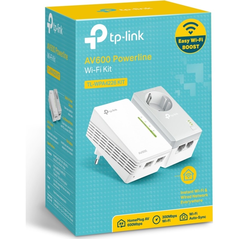 Το TL-WPA4226 ΚΙΤ της TP-LINK επεκτείνει την ασύρματη σύνδεσή σας στο Internet σε όλα τα δωμάτια του σπιτιού σας, μέσω των υφιστάμενων ηλεκτρικών καλωδίων. Με ταχύτητα μέσω των καλωδίων 500Mbps και ασύρματη ταχύτητα 300Mbps. Το TL-WPA4220 διαθέτει πλήκτρο Wi-Fi Clone για αυτόματη επέκταση του ασύρματου σήματος του router σας, για απρόσκοπτη πρόσβαση στο οικιακό δίκτυό σας. Επιπλέον, το TL-PA4020P διαθέτει ενσωματωμένη πρίζα, για να μπορέσετε να συνδέσετε τις επιθυμητές συσκευές, όπως θα κάνατε και σε μια οποιαδήποτε άλλη πρίζα.