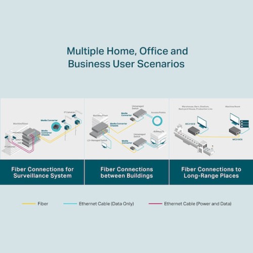 Πραγματοποιεί την επέκταση της απόστασης ινών έως και 20km για single-mode ίνα. Λειτουργεί ως stand alone συσκευή ή με το Rackmount Chassis TL-MC1400 της TP-LINK.