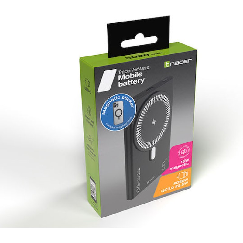 Tracer AirMag2 MagSafe Power Bank 5000mAh με Θύρα USB-C Μαύρο (TRABAT47645)