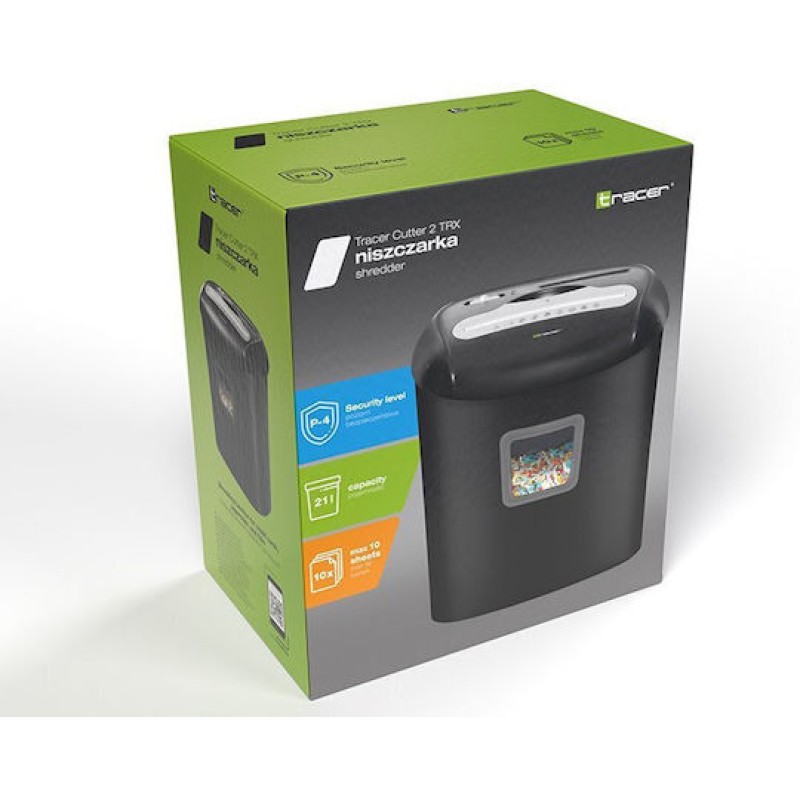 Ο Tracer Cutter 2 TRX είναι ένας αποδοτικός καταστροφέας εγγράφων, σχεδιασμένος για χρήση στο σπίτι ή σε μικρό γραφείο. Προσφέρει υψηλό επίπεδο ασφαλείας (P-4), καταστρέφοντας τα έγγραφα σε μικρά κομμάτια μεγέθους 5 × 16 mm. Μπορεί να καταστρέψει έως και 10 φύλλα χαρτιού ταυτόχρονα, καθώς και πιστωτικές κάρτες, CD/DVD και μικρούς συνδετήρες. Διαθέτει κάδο χωρητικότητας 21 λίτρων, αυτόματη εκκίνηση/παύση, λειτουργία αντίστροφης κίνησης και σύστημα προστασίας από υπερθέρμανση, προσφέροντας ασφάλεια και ευκολία στη χρήση.