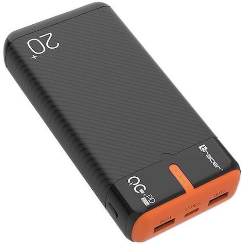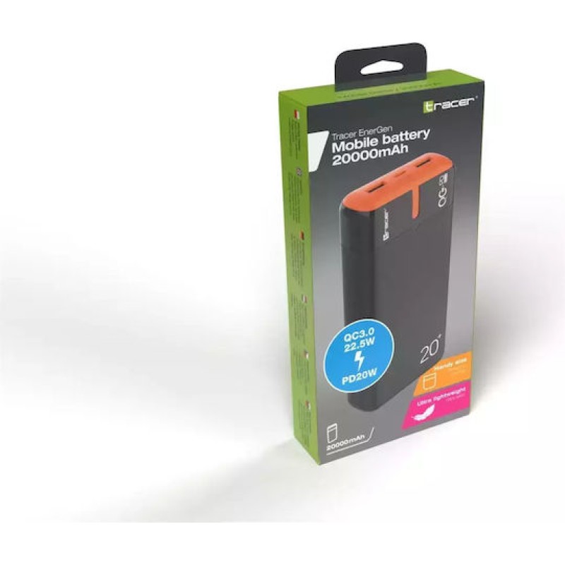 Tracer EnerGen Power Bank 20000mAh 22.5W με 2 Θύρες USB-A και Θύρα USB-C Power Delivery / Quick Charge 3.0 Black Orange (TRABAT47516)