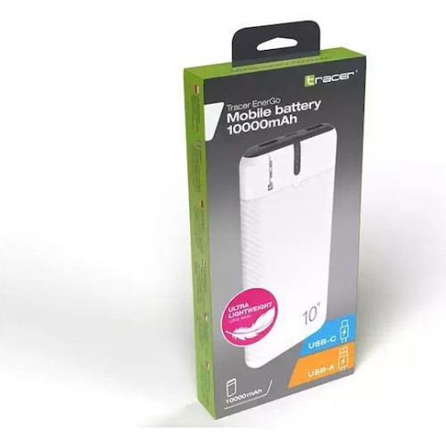 Tracer EnerGo Power Bank 10000mAh με 2 Θύρες USB-A και Θύρα USB-C White / Black (TRABAT47515)